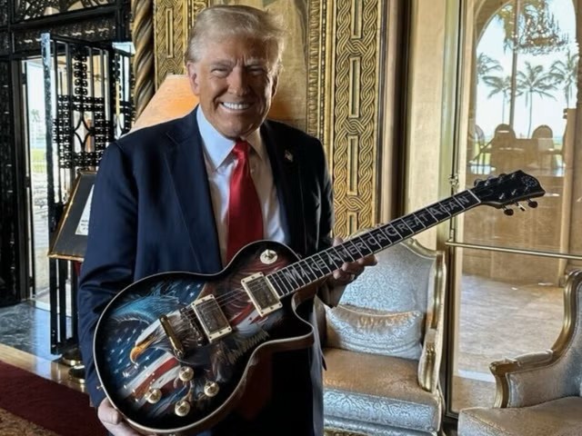 Gibson Guitars issued a nasty Cease and Desist Letter to shady Trump Guitars for ripping off the famous Les Paul design where ironically the only guitar conman Donald Trump ever played was an unplugged Russian Air to The Beatles’ “Baby, You’re a Rich Man” and “Maxwell’s Silver Hammer” at Jeffrey Epstein hosted Prince Andrew’s Princess Bride Tea & Crumpet Party held on British Mother’s Day in New York Trump Tower’s Ghislaine’s Good Girls Suite. The Queen, Princess Fergie, and Big Daddy Maxwell were not happy clappers.